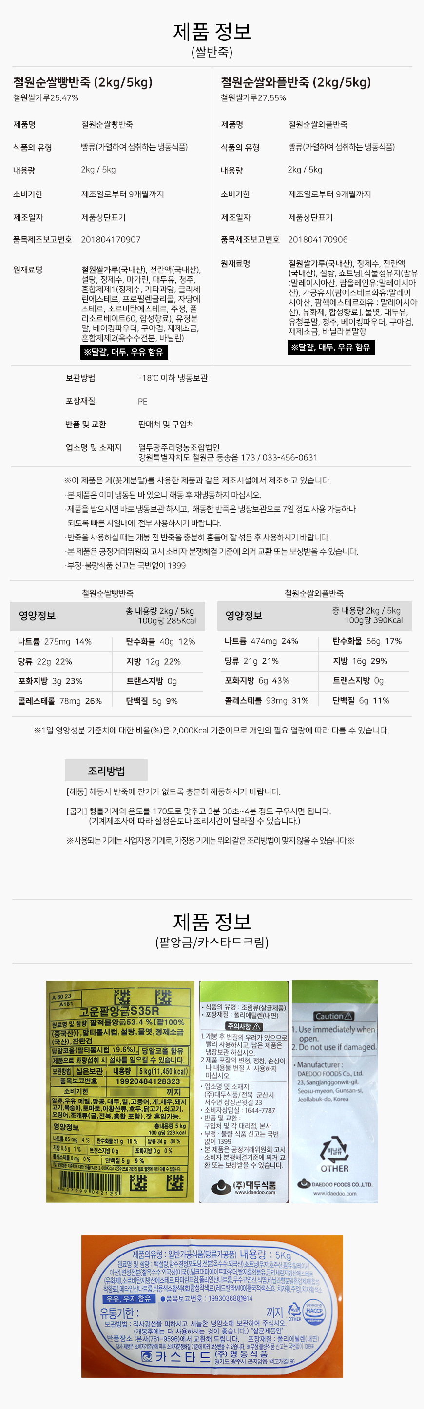 배송료 반죽제품은 5kg제품의 경우 20kg단위, 2kg제품의 경우 16kg단위 주문시 무료배송입니다.