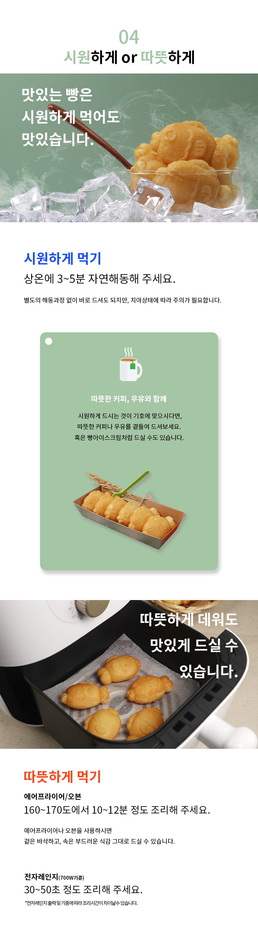 냉동제품의 경우, 반죽은 장기 냉동 보관시 침전현상이나 변색 현상이 일어날 수 있으나 제품에는 이상이 없으니 안심하고 드셔도 됩니다.