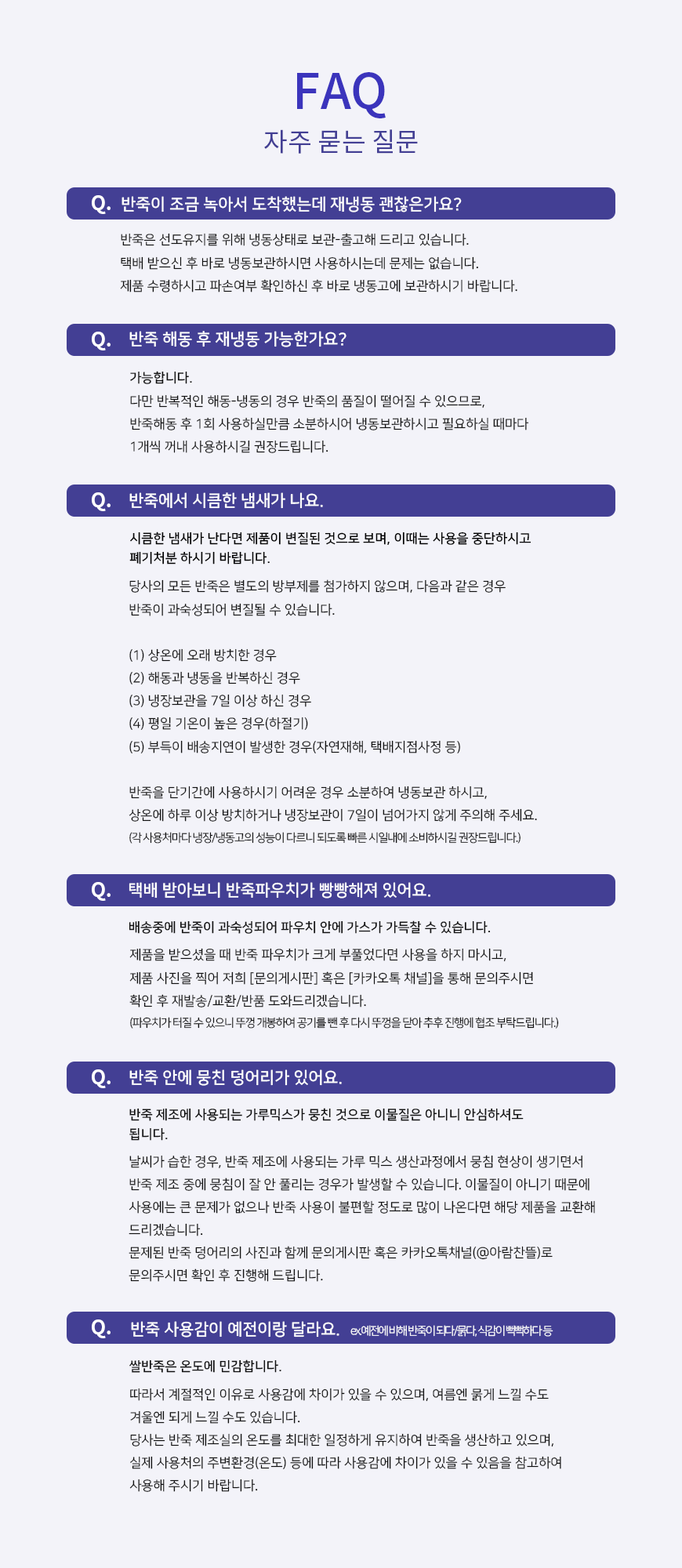 냉동제품의 경우, 제품을 수령하신 뒤 바로 냉동고에 넣어주세요
