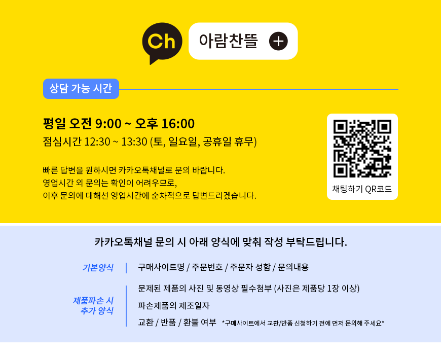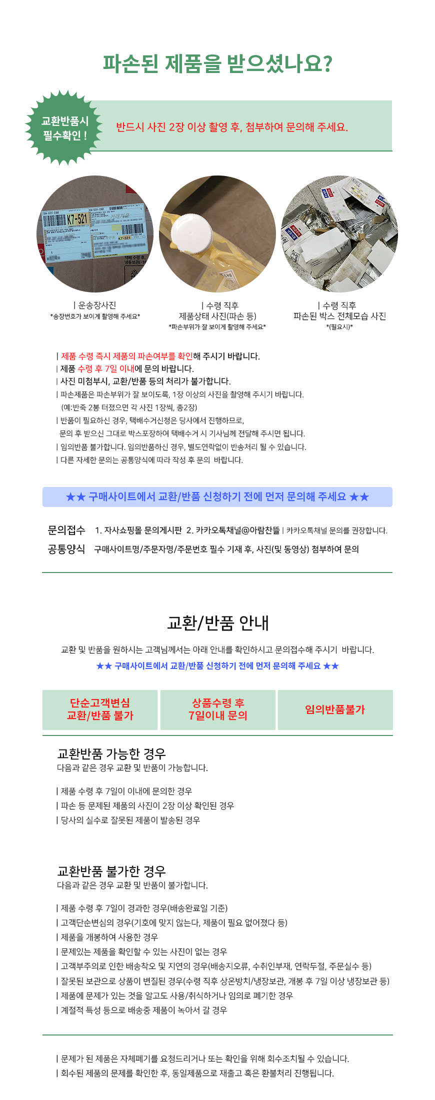 제품 수령 즉시 제품의 파손여부를 확인해 주시기 바랍니다.