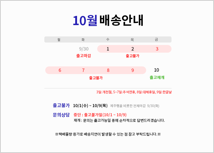 제품 수령 후 7일 이내에 문의 바랍니다.