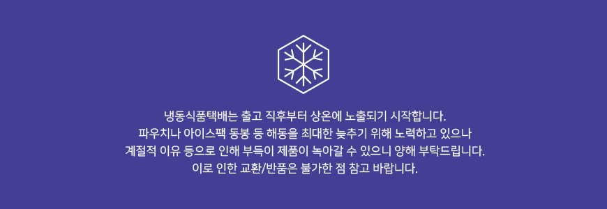 냉동제품의 경우, 제품을 수령하신 뒤 바로 냉동고에 넣어주세요